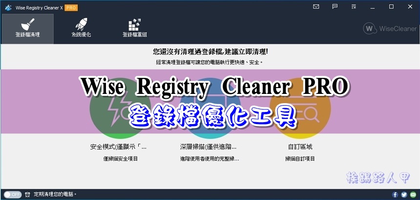 Windows的人性化界面仍然無法滿足每個人的需求,一些密技與優化的技巧幾乎來自登錄編輯程式的修改動作。Wise Registry Cleaner PRO 是一款 Windows 登錄檔的優化工具,可以優化與備份 Registry 區,並檢查不正確或過期的資訊、清除無效與修正錯誤登錄檔案,以加快系統運行速度。