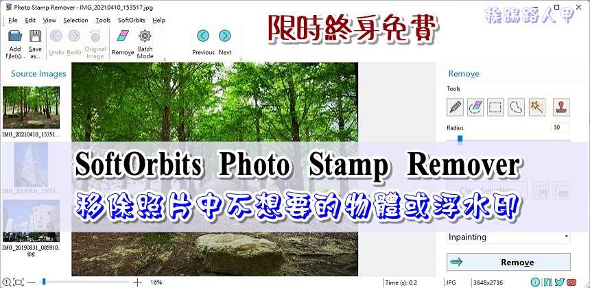 來試試限時終身免費的 SoftOrbits Photo Stamp Remover 軟體。此工具是一款浮水印移除軟體,可以讓您在幾個點擊中輕鬆地從照片中移除浮水印、人物和日期戳記。您甚至可以在完成後添加自己的浮水印,讓畫面更加清爽宜人。