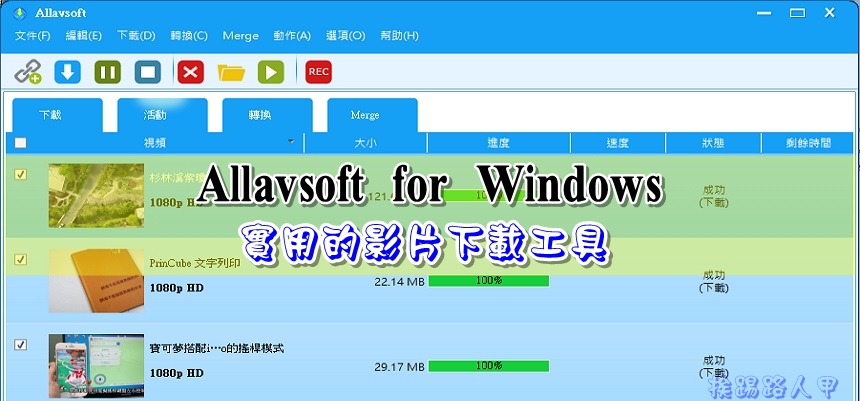 下載後離線觀看似乎蠻實際的,且不會有擾人的廣告,介紹一款 Allavsoft for Windows 下載影音工具,複製網址時就會自動偵測加入下載,支援YouTube、Facebook、Vimeo、Twitter 等網站影片下載,真心推薦安裝來玩玩,目前限時終身免費,動作要快。